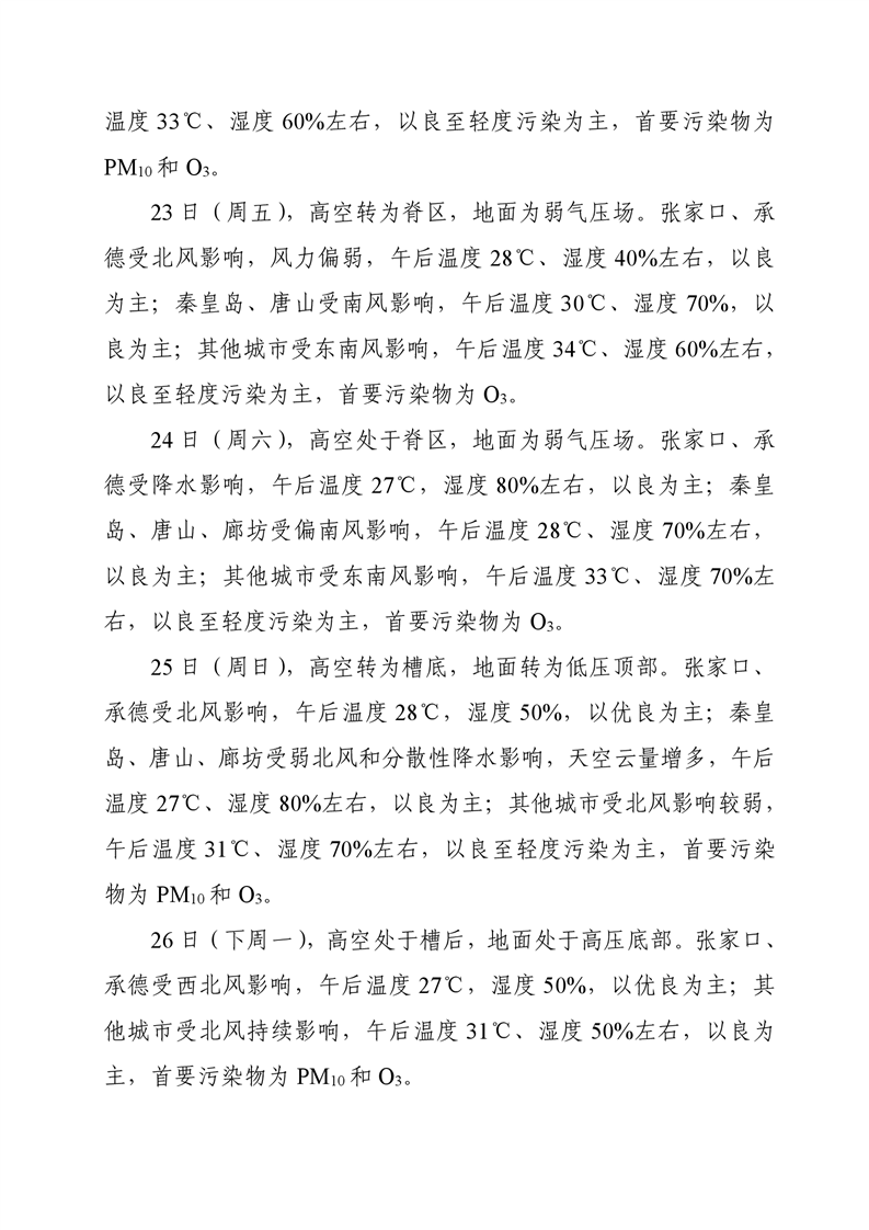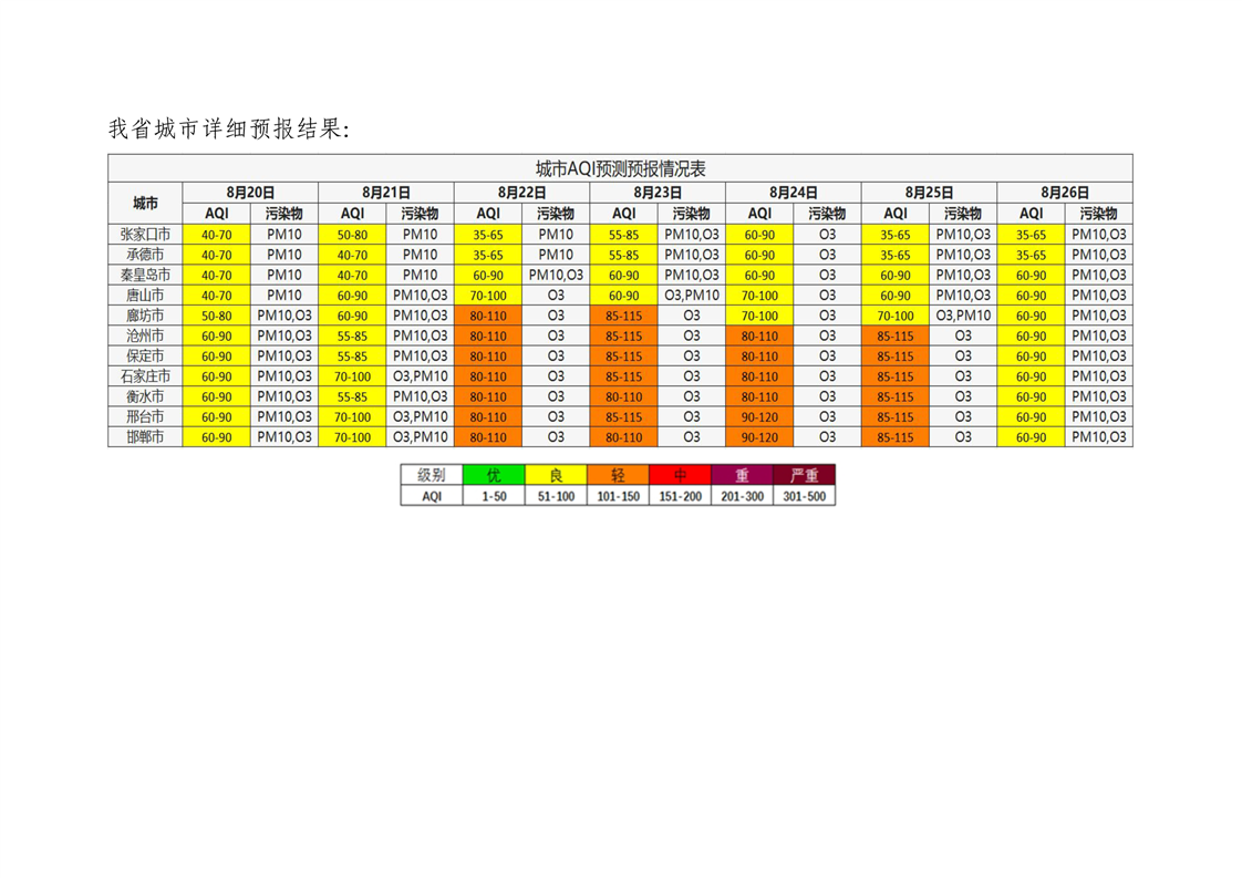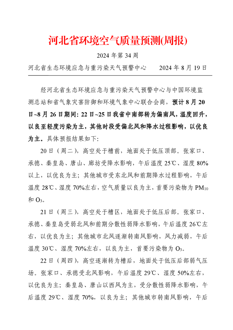 河北省空气质量预测报告(周报)2024年第34周
