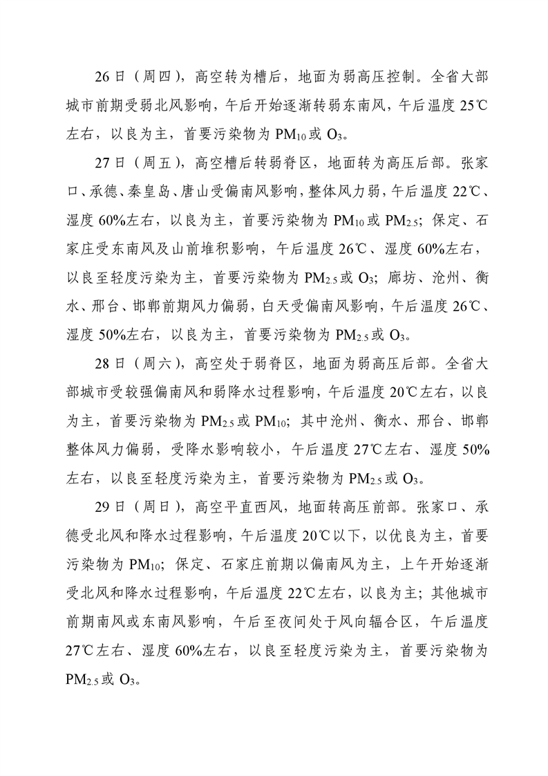 河北省空气质量预测报告(周报)2024年第40周