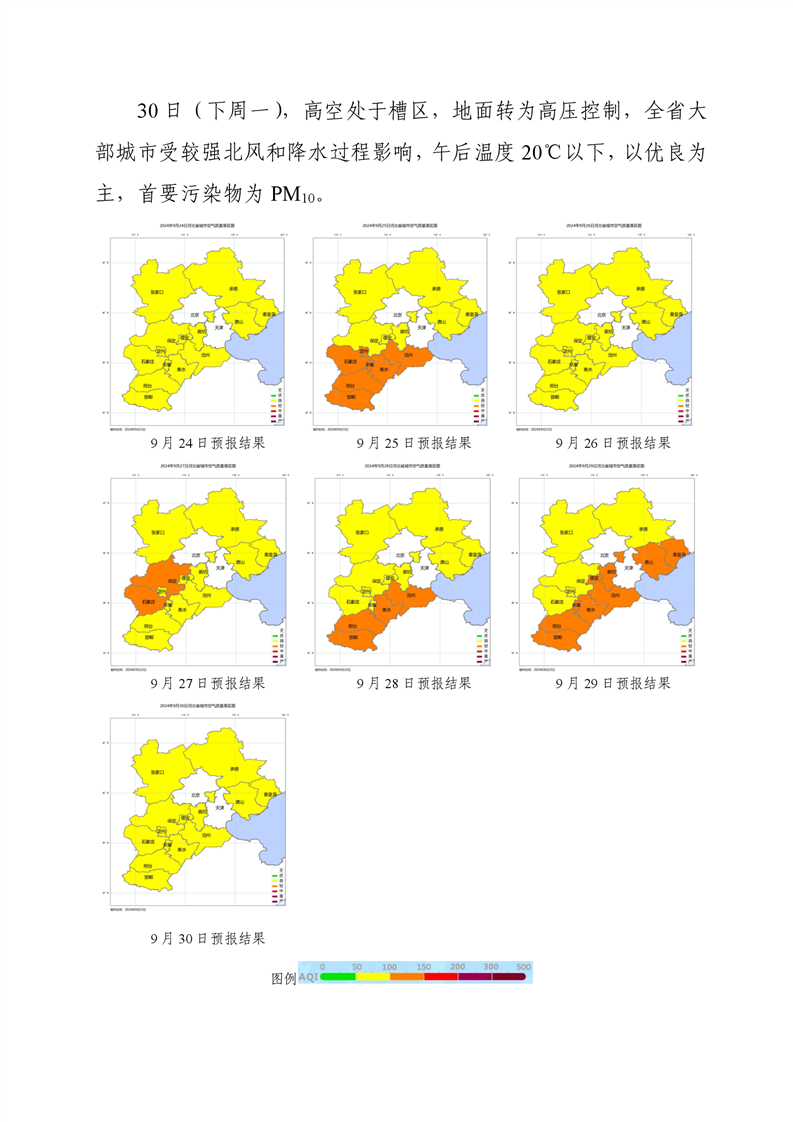 河北省空气质量预测报告(周报)2024年第39周