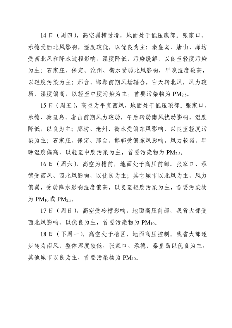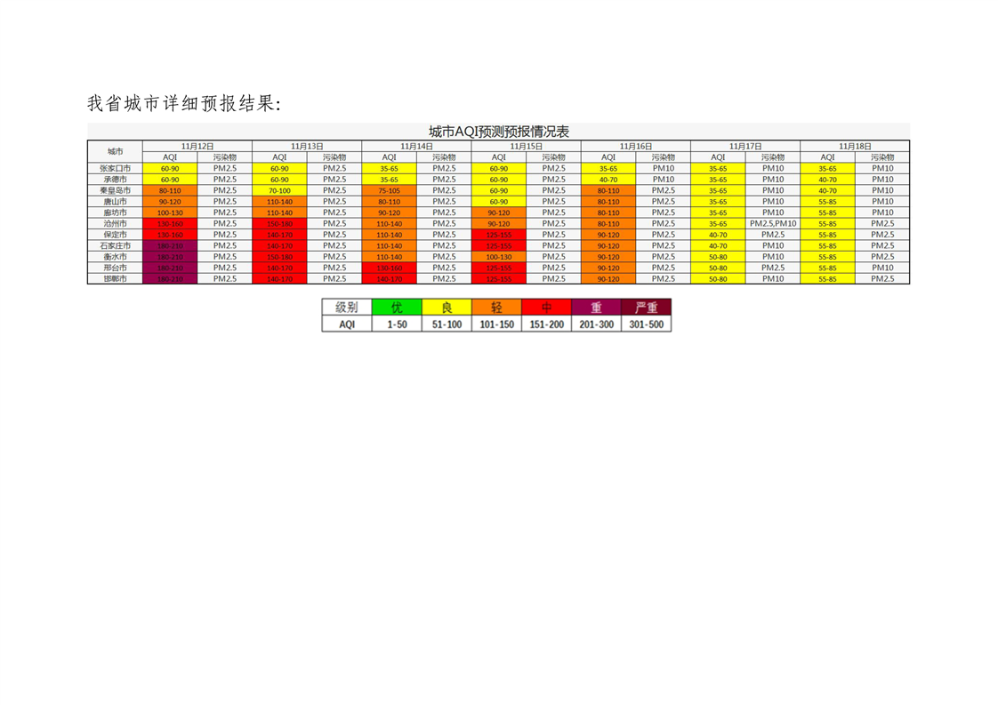 河北省空气质量预测报告(周报)2024年第46周