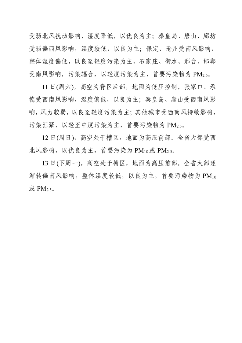 河北省空气质量预测报告(周报)2025年第2周