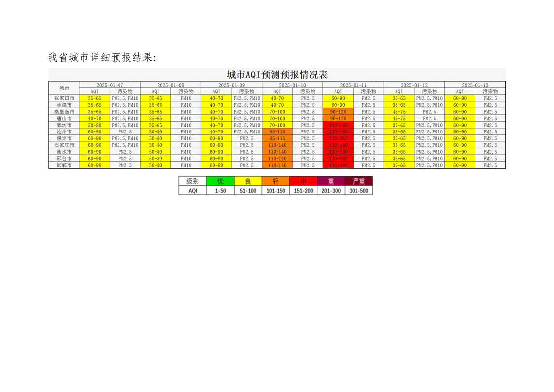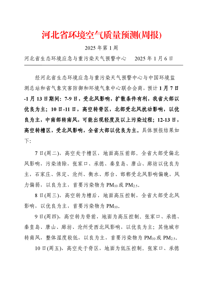 河北省空气质量预测报告(周报)2025年第1周