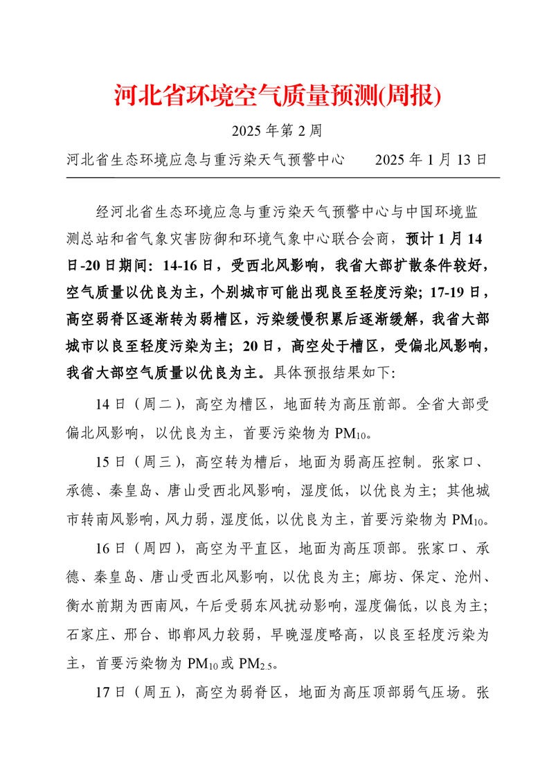 来源:省生态环境应急与重污染天气预警中心 时间:2025-01-13