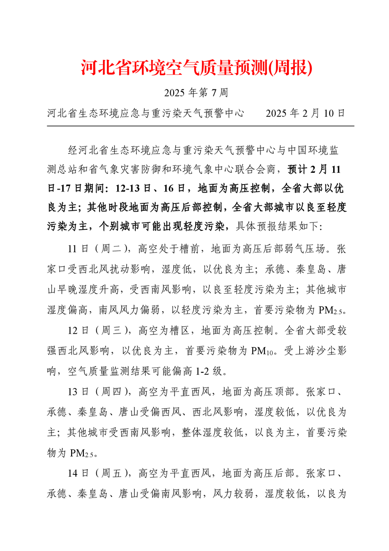 来源:省生态环境应急与重污染天气预警中心 时间:2025-02-10