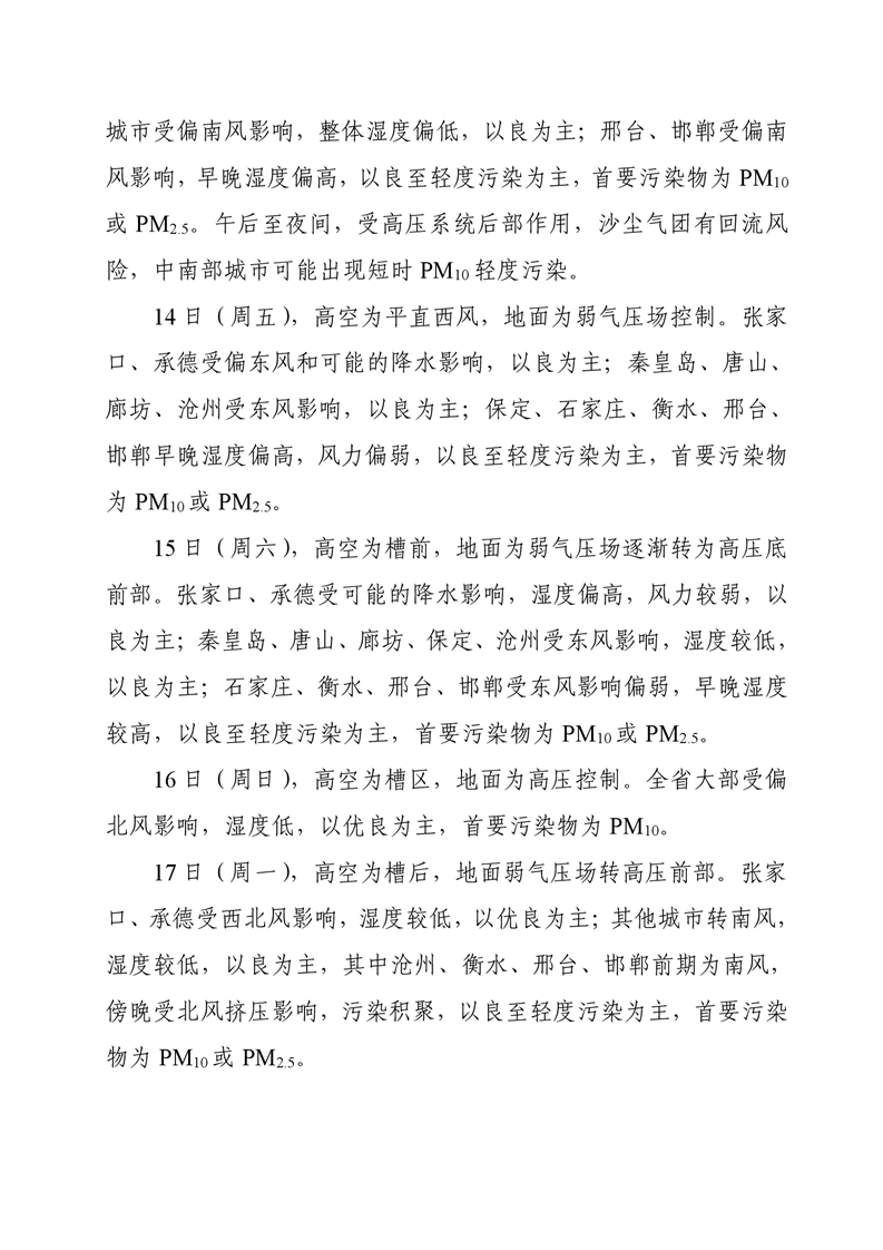 河北省空气质量预测报告(周报)2025年第11周