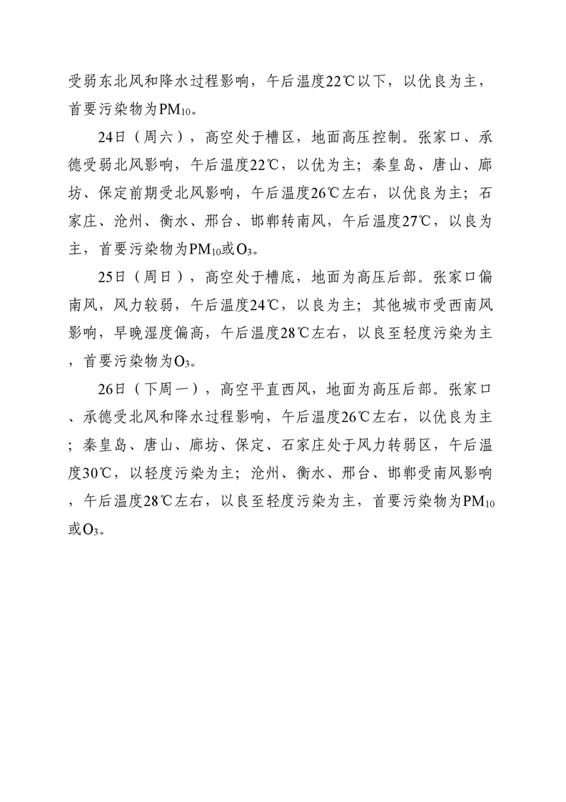 河北省空气质量预测报告周报2025年第21周