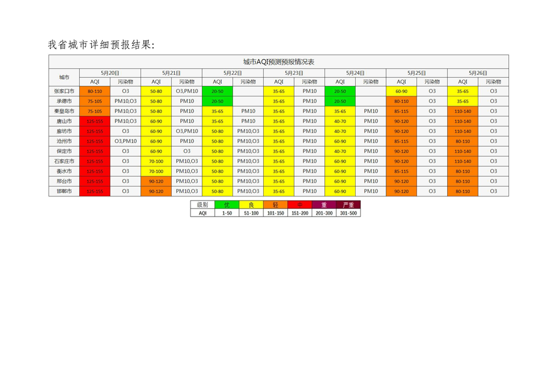 河北省空气质量预测报告(周报)2025年第20周
