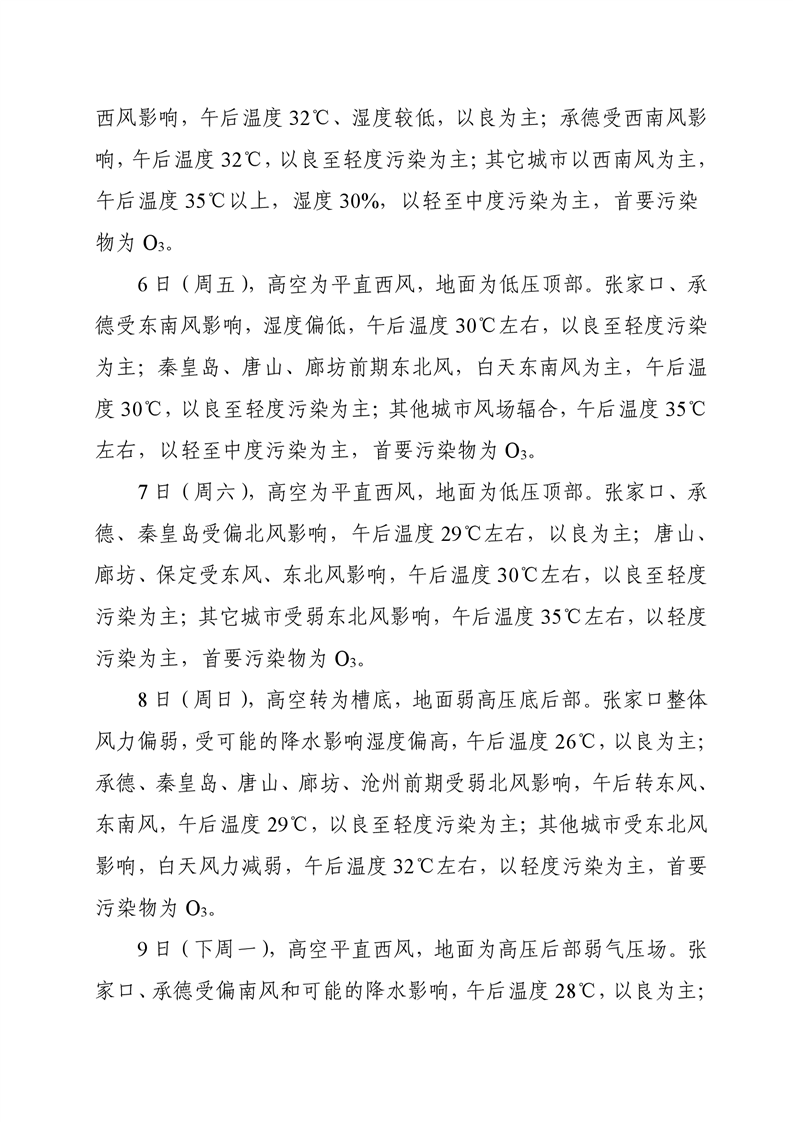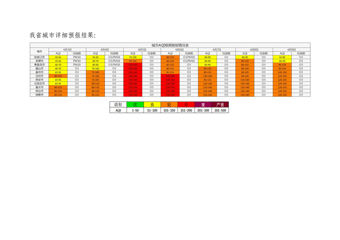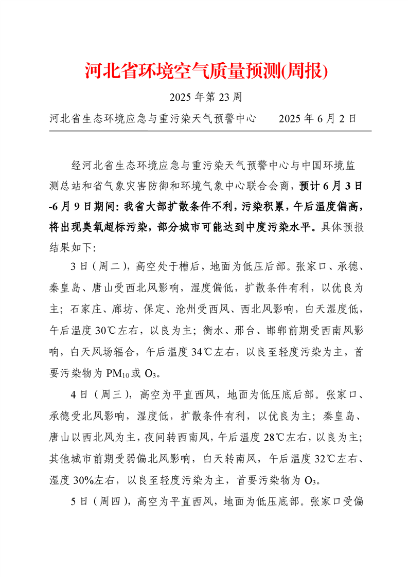 河北省空气质量预测报告周报2025年第23周