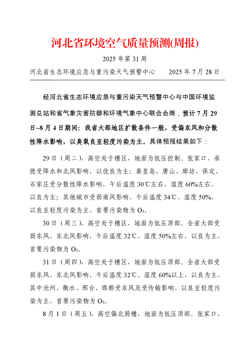 来源:省生态环境应急与重污染天气预警中心 时间:2025-07-28