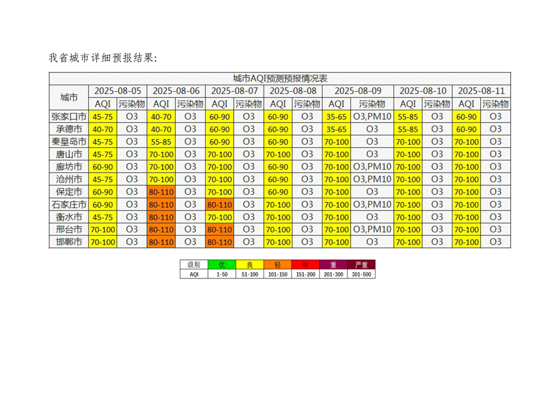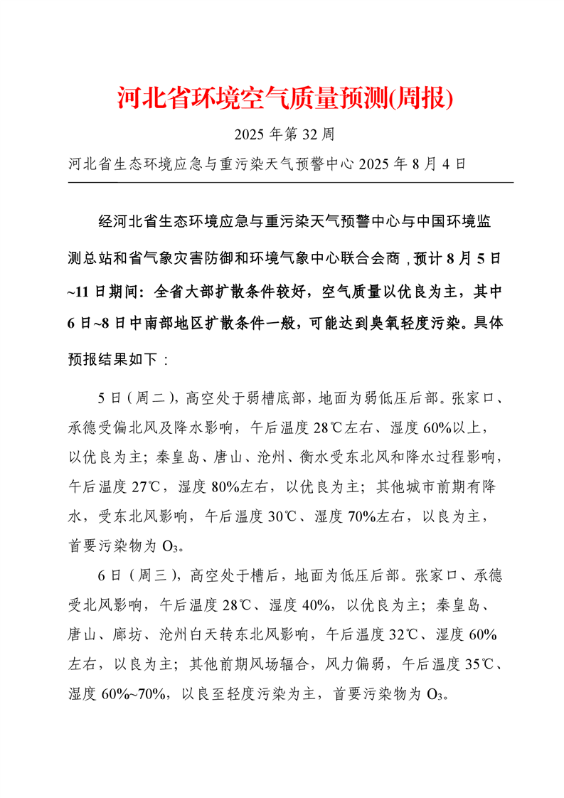 河北省空气质量预测报告周报2025年第32周
