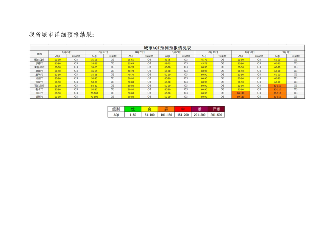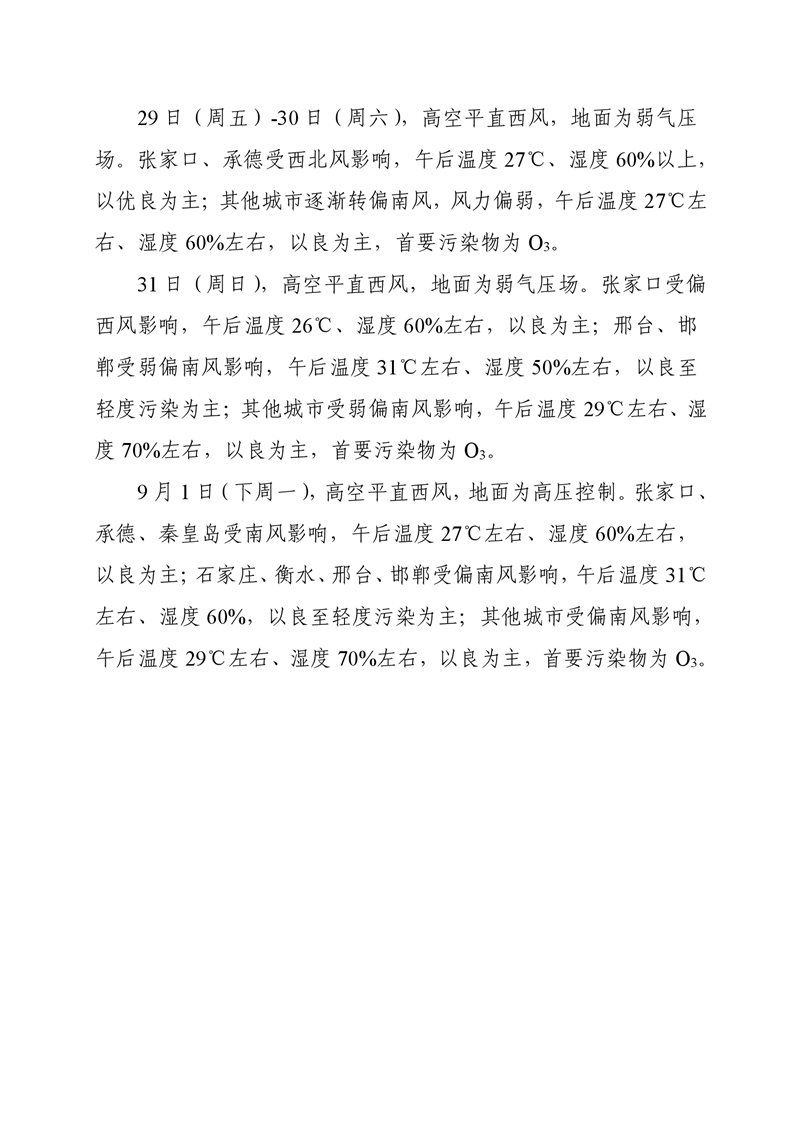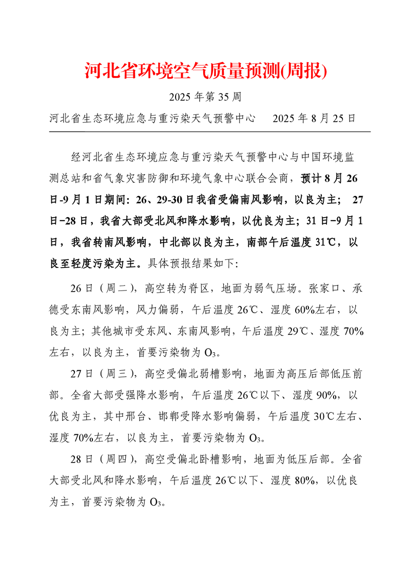 河北省空气质量预测报告周报2025年第35周