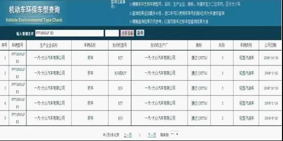 3、根据查询结果比对自己车辆的车辆型号和发动机型号,然后根据自己车辆的出厂日期和查询结果中的公开日期进行核对,如图4所示。