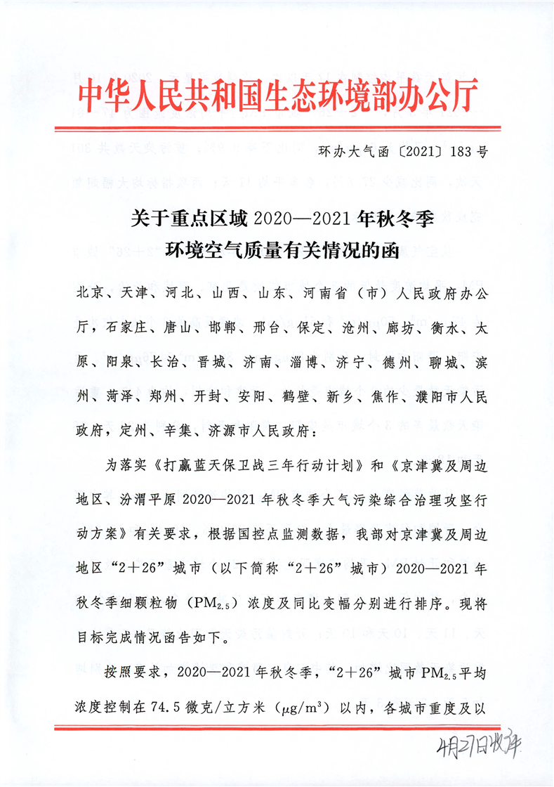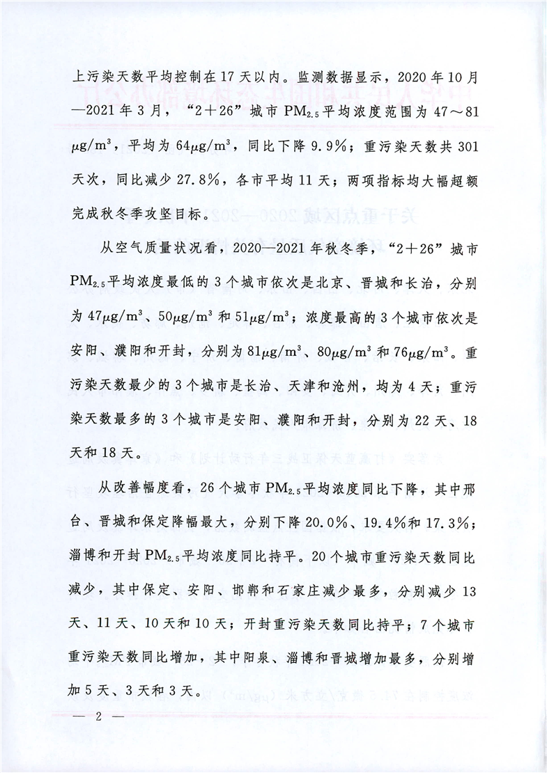杏彩公布2020-2021年秋冬季环境空气质量完成情况
