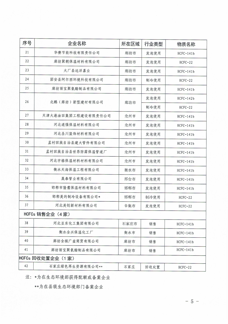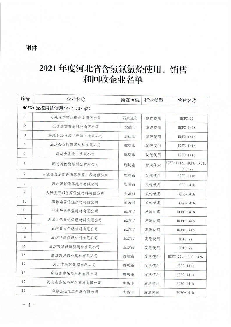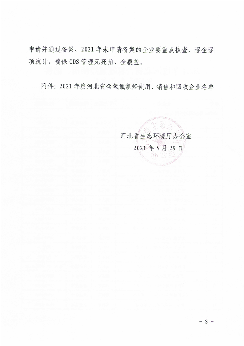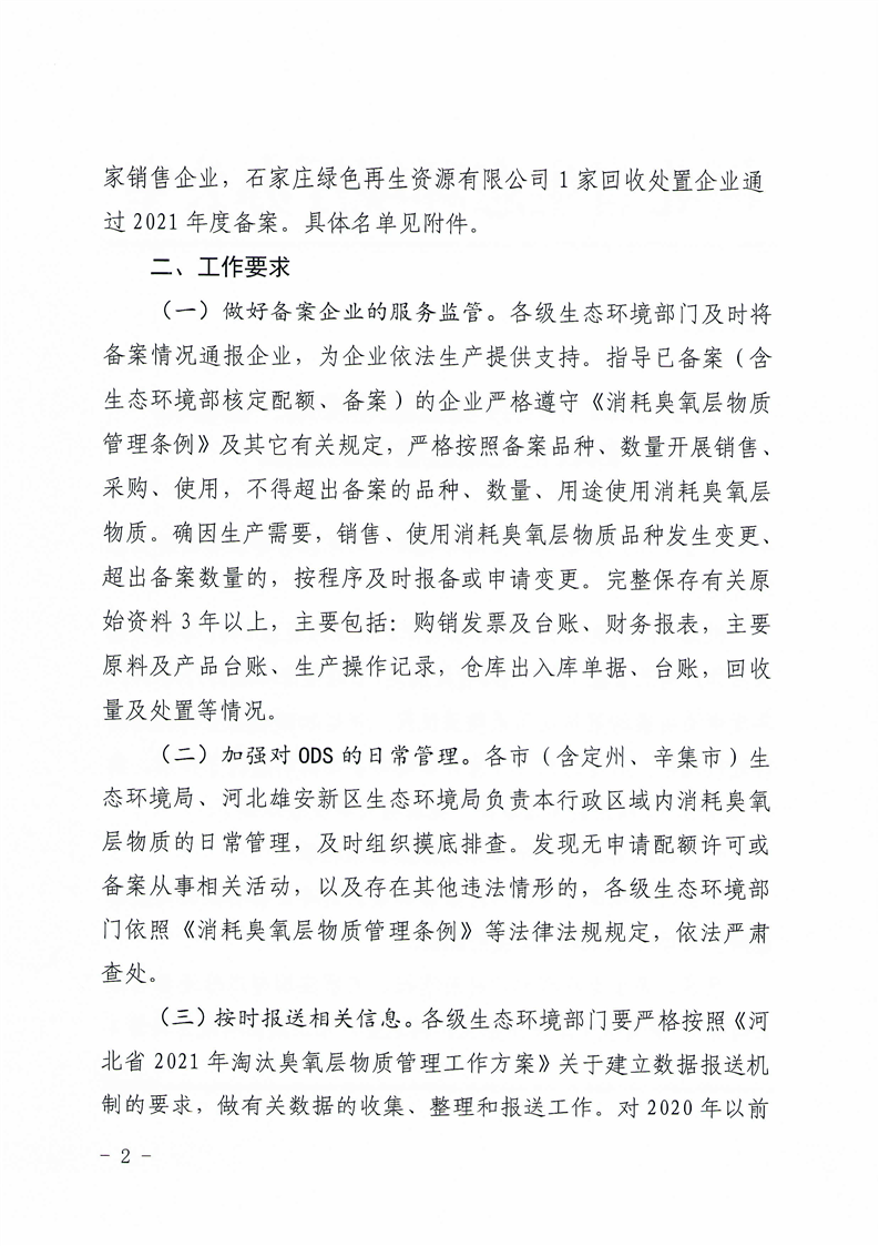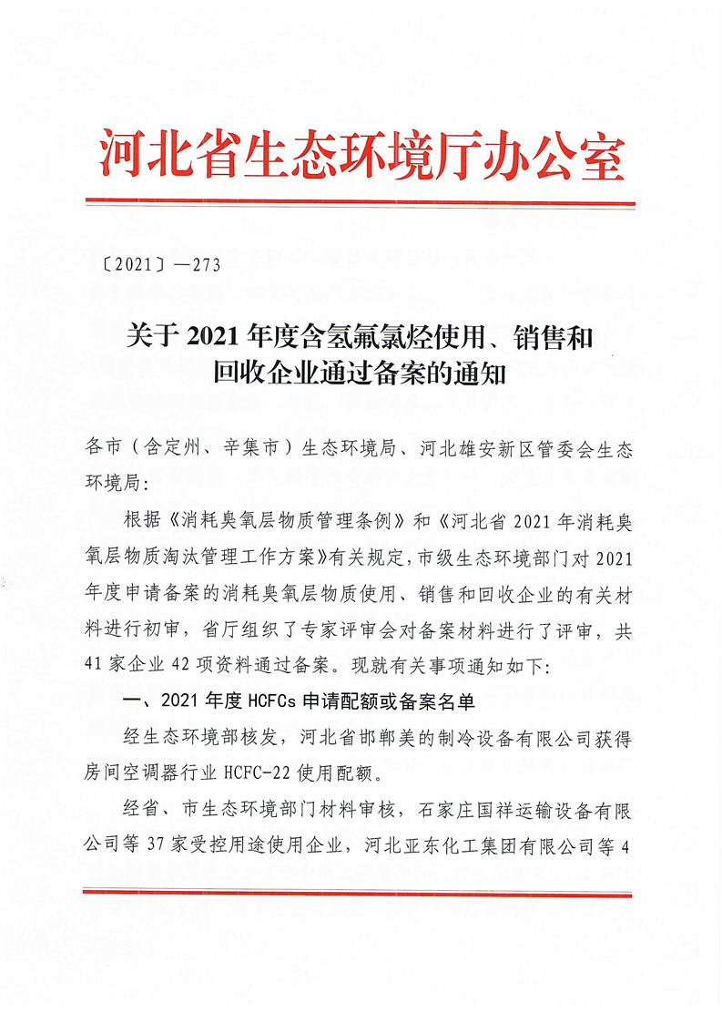关于2021年度含氢氟氯烃使用、销售和回收企业通过备案的通知