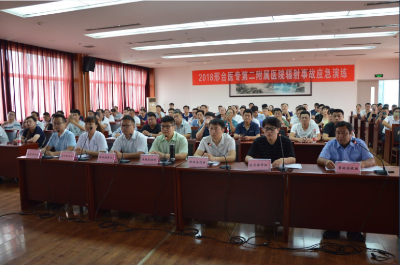 2018年7月27日上午,为检验医院、环保、公安、卫生、宣传等有关部门对突发辐射事故的应急响应、组织协调以及协同作战能力,全面提升我市辐射事故应急响应水平,有效应对和处置影响辐射环境安全的突发事件,按照省环保厅的部署要求,邢台市环保局、桥西区环保分局和邢台医学高等专科学校第二附属医院联合举行了辐射事故应急综合演练。各县(区)环保分局主管辐射安全的副局长、科长和使用射线装置的核技术利用单位负责同志160余人观摩了应急演练。