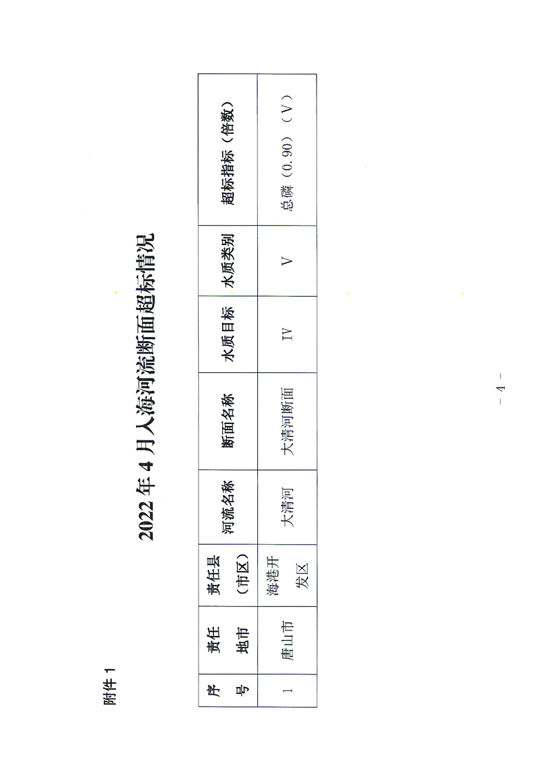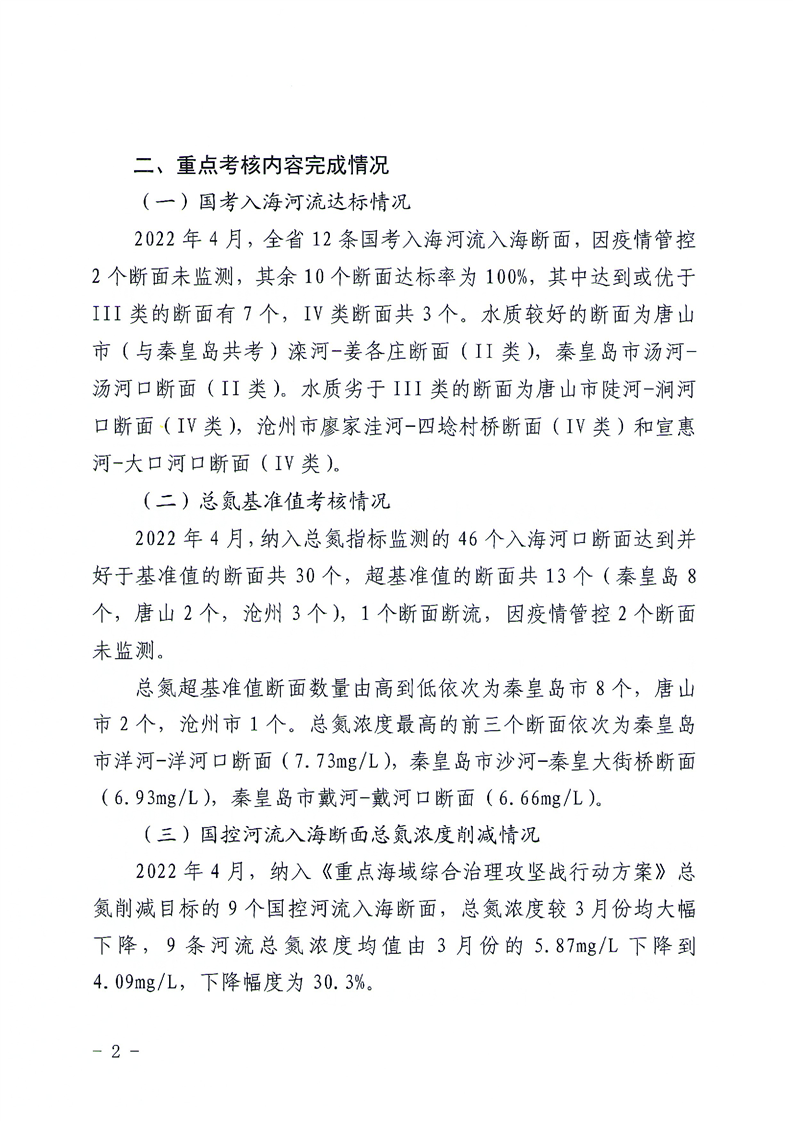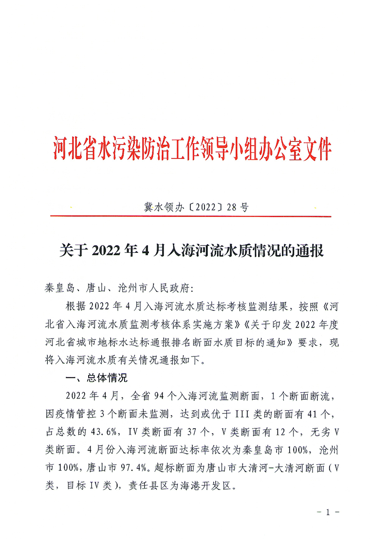 关于2022年4月入海河流水质情况的通报