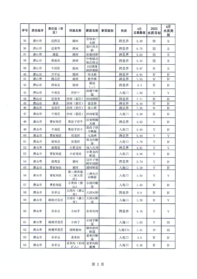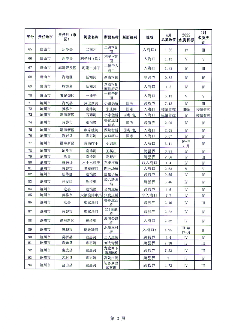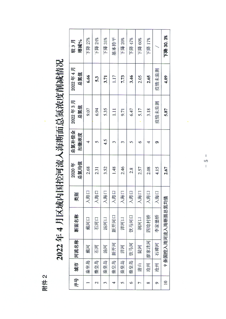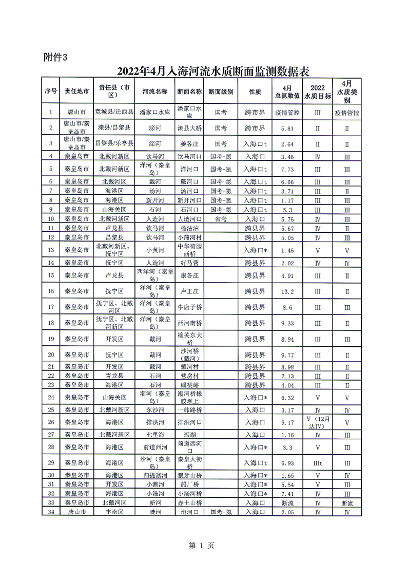 关于2022年4月入海河流水质情况的通报