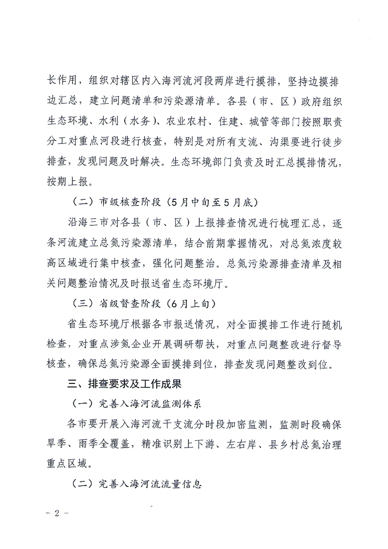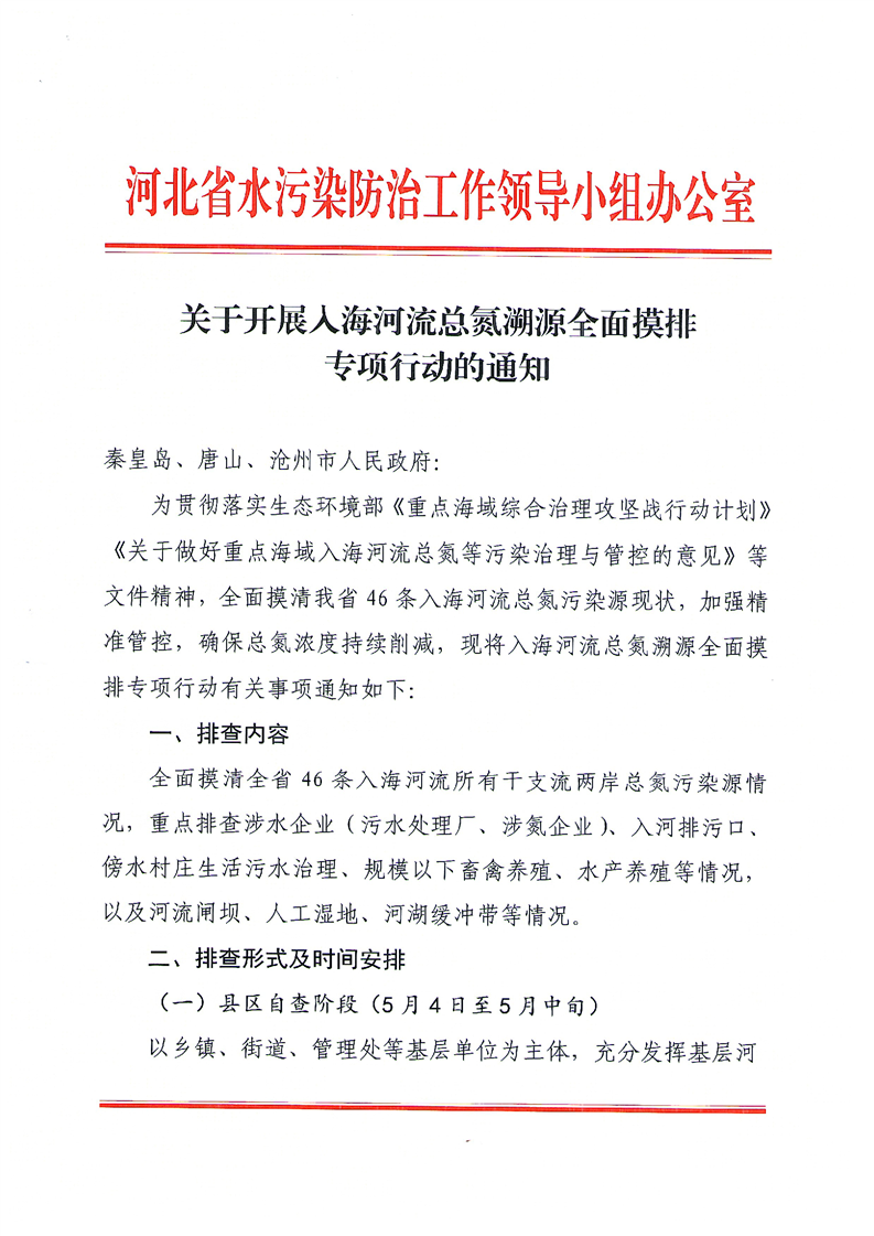 关于开展入海河流总氮溯源全面摸排专项行动的通知