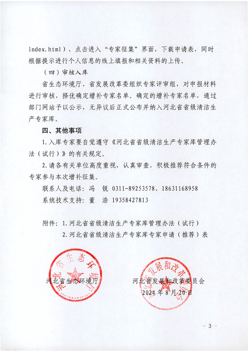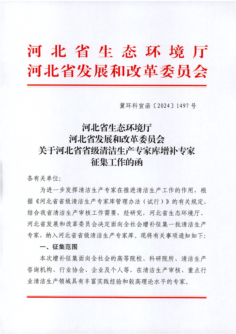 杏彩(中国)官方网站 河北省发展和改革委员会 关于河北省省级清洁生产专家库增补专家征集工作的函 来源:杏彩(中国)官方网站 河北省发展和改革委员会 时间:2024-08-23