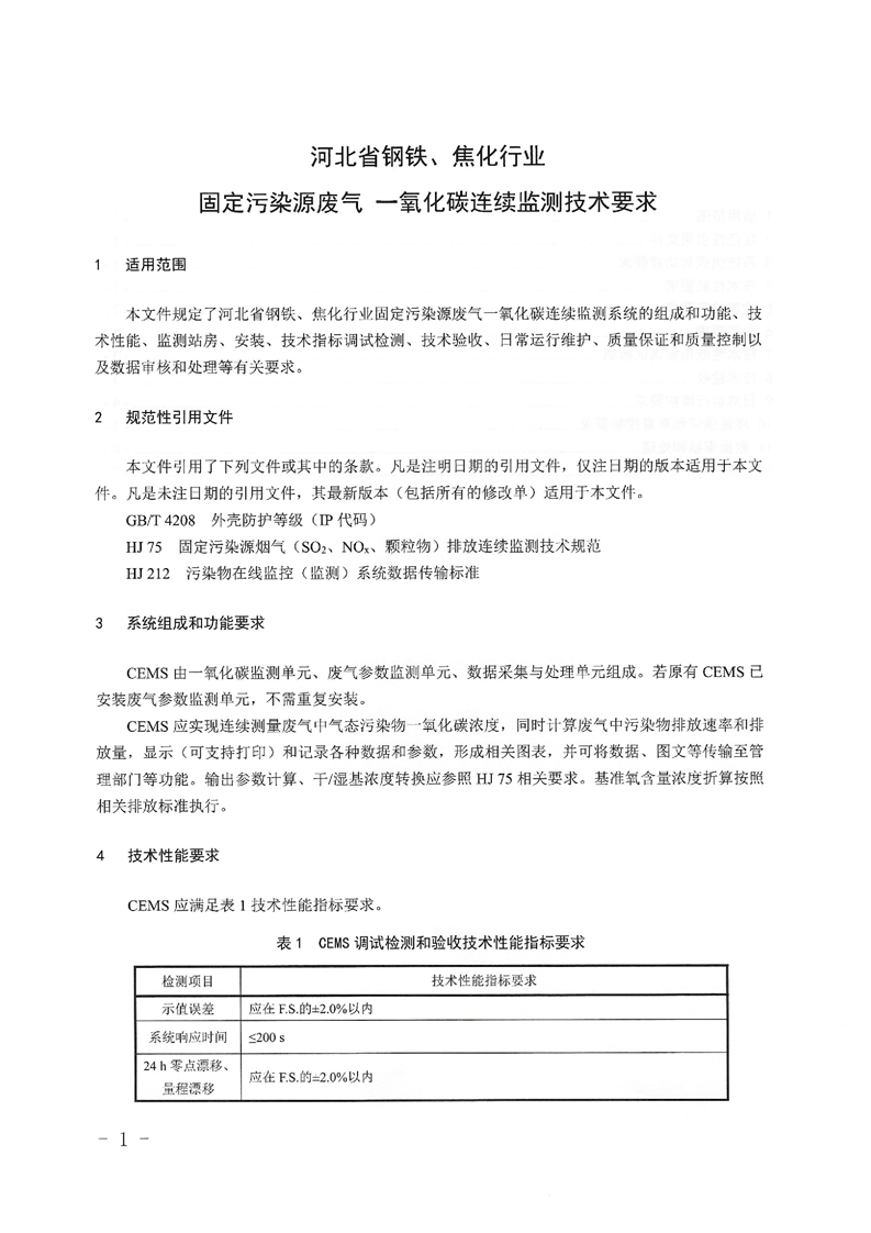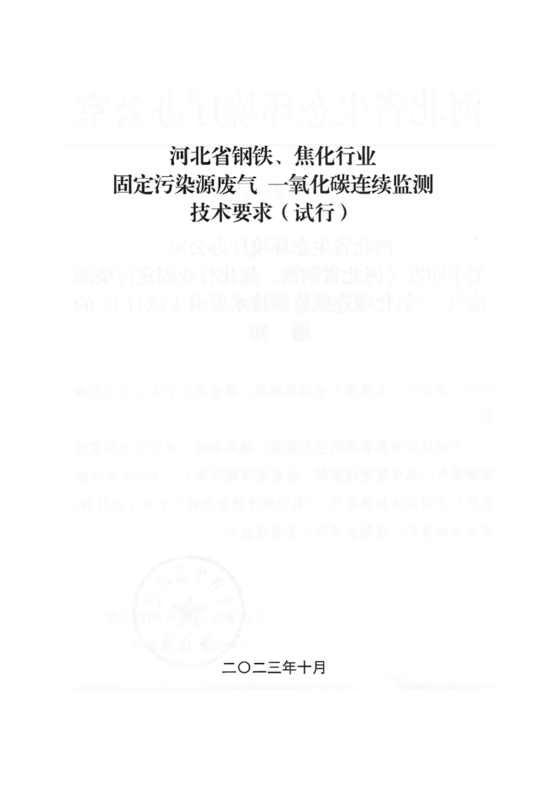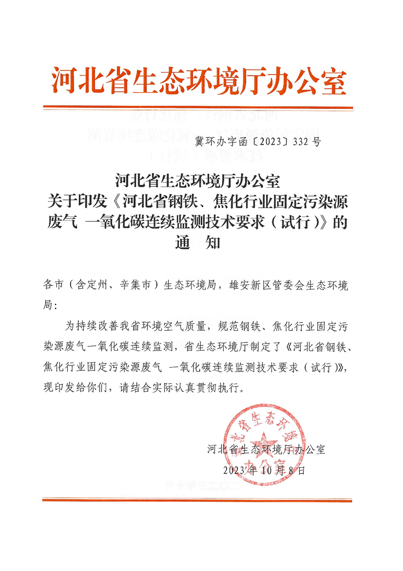 关于印发《河北省钢铁、焦化行业固定污染源废气 一氧化碳连续监测技术要求(试行)》的通知