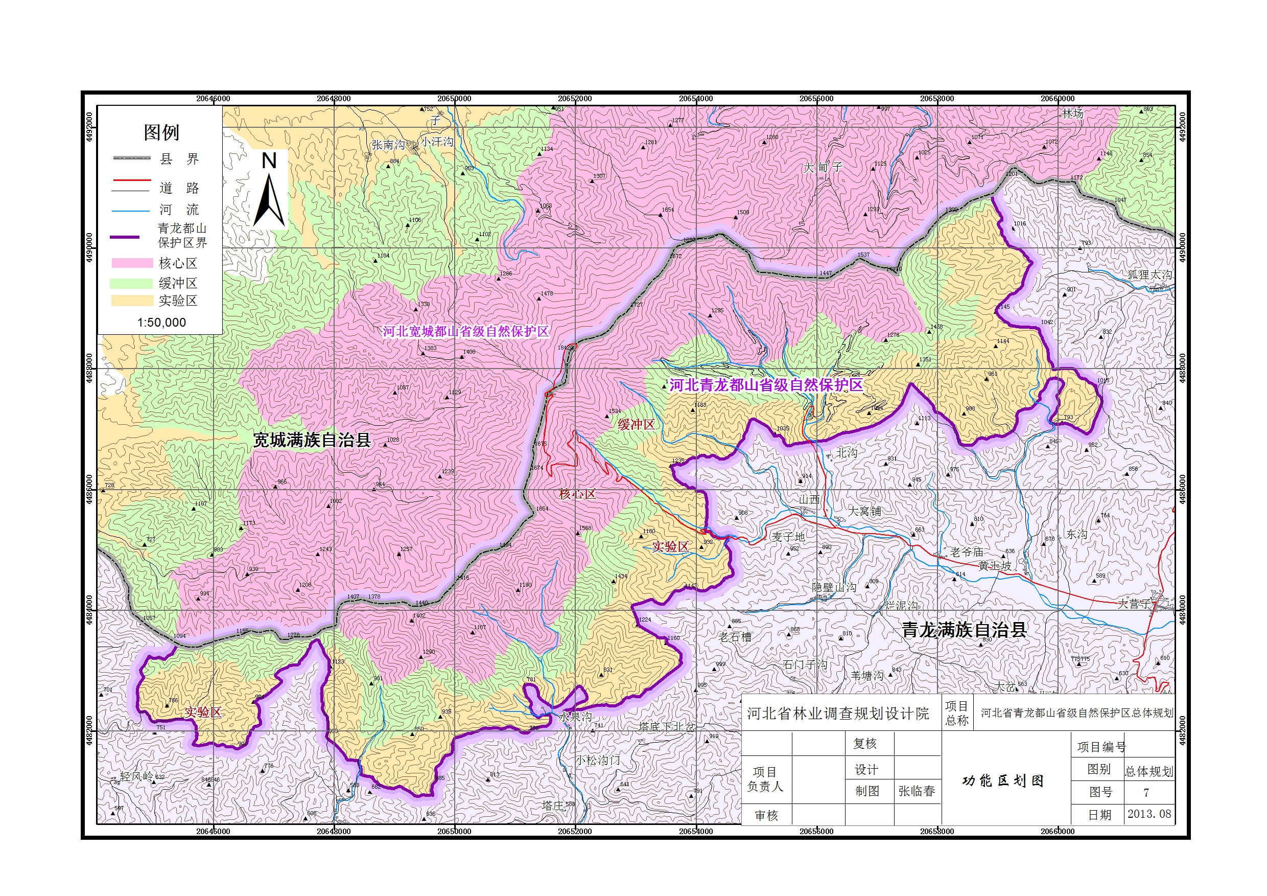 2.拟建河北青龙都山省级自然保护区的功能区划图。
