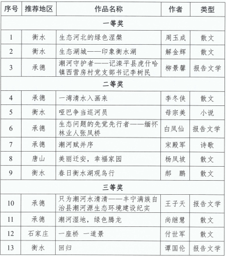 经专家评选,共评选出一等奖3名、二等奖6名、三等奖10名、优秀奖20名。获奖名单公布如下。即日起,河北生态环境发布将陆续对获奖作品进行展示,敬请关注。