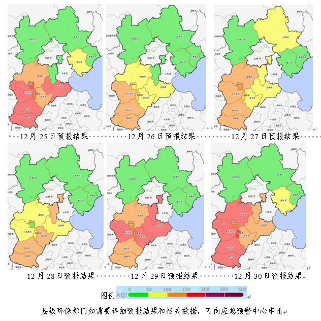 本周全省空气质量预报(2018年12月24日~12月30日) 来源:省生态环境应急与重污染天气预警中心 时间:2018-12-24