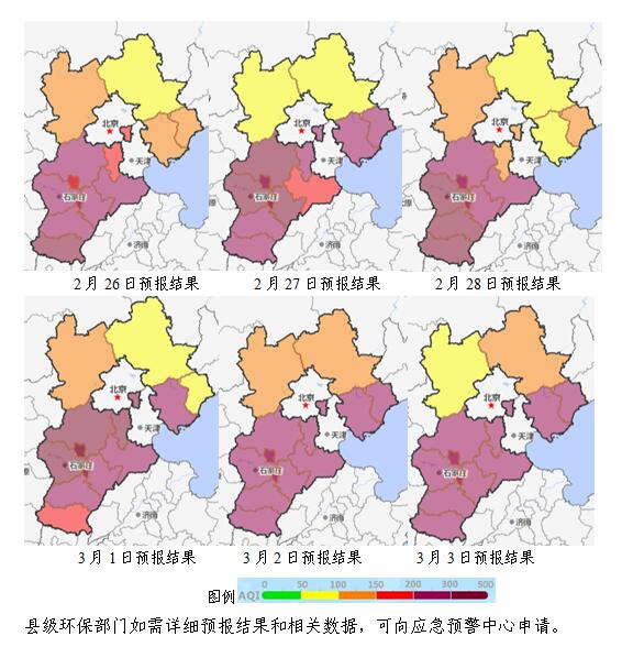 26~28日,地面转为高压后部,扩散条件再次转差,我省北部以良至轻度污染为主,中南部仍以重度污染为主。