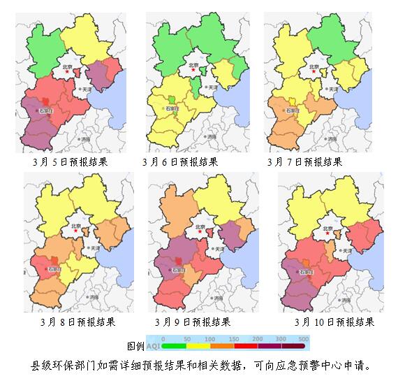 8~10日,扩散条件开始转差,8日,受前期冷空气影响,污染积累缓慢,我省北部以良至轻度污染为主,中南部以轻至中度污染为主。9~10日,扩散条件持续不利,我省北部以轻至中度污染为主,中南部可能出现重度污染。
