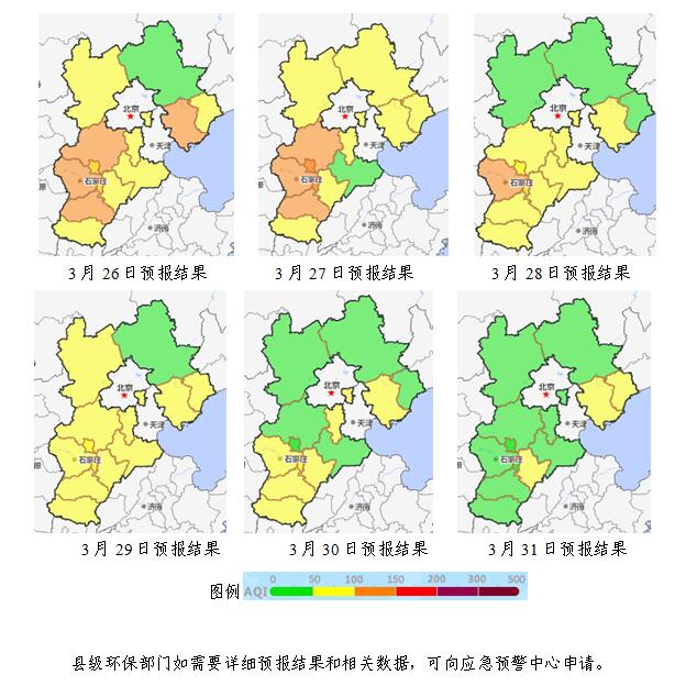 26~29日,受间歇弱东北冷空气影响,扩散条件一般,我省北部以优良为主,中南部以良至轻度污染为主,首要污染物为PM2.5和PM10。