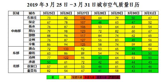 上周(2019年3月25日~3月31日),25-27日,扩散条件一般,我省大部以良至轻度污染为主;28-31日,受冷空气影响,扩散条件较好,全省空气质量以优良为主。