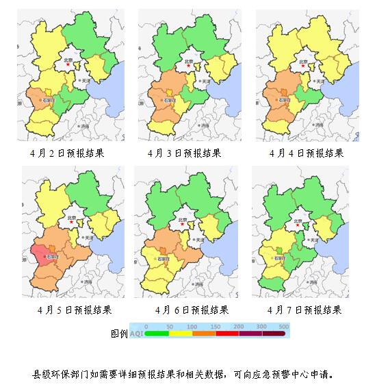 本周全省空气质量预报(2019年4月1日~4月7日) 来源:省生态环境应急与重污染天气预警中心 时间:2019-04-01