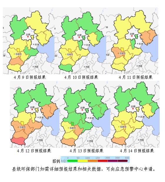 本周全省空气质量预报(2019年4月8日~4月14日) 来源:省生态环境应急与重污染天气预警中心 时间:2019-04-08